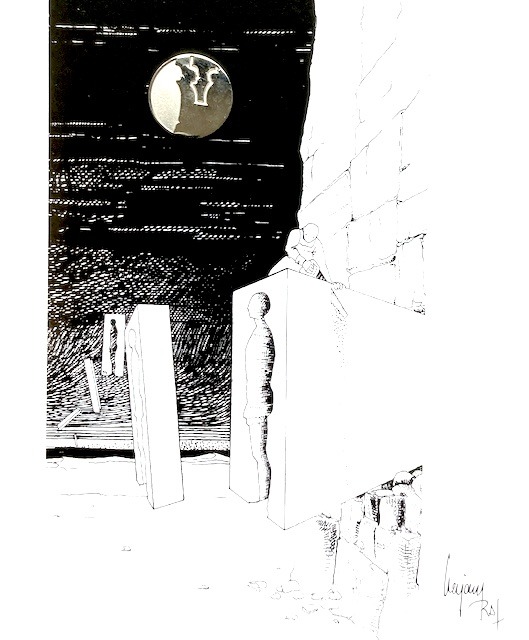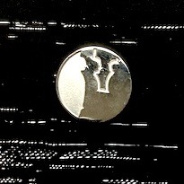 Afbeeldingen van silhouetten; de homoïden van Raf. Afmeting: 2cm diameter op kaart van 18 x 13cm.